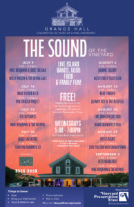 Co-produced with island musician Mike Benjamin, who curates the Locals Stage with support from the Slough Cove Foundation and Backdoor Doughnuts, the series elevates local talent and celebrates the Vineyard’s creative spirit. Bring a chair, pack a picnic, or grab a bite from local vendors, and settle in for an evening that’s casual, joyful, and open to all — music the way the Grange has always done it: together.