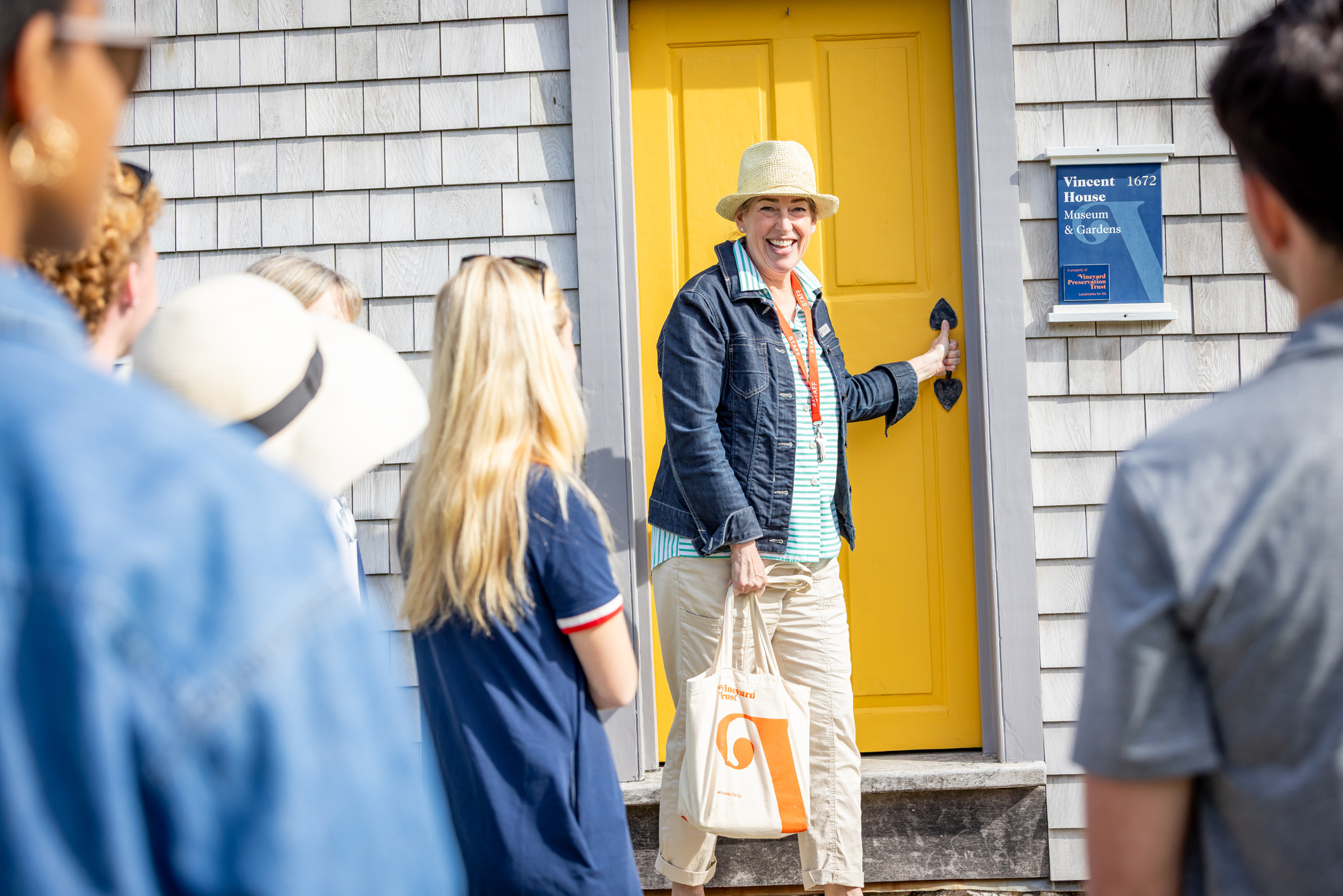 Adding to the installation’s warm and welcoming atmosphere, historian Norah Van Riper is on site every Tuesday during Edgartown Village Market days. Norah offers visitors rich context about the Island’s history and the Vincent House’s place within it, weaving stories that deepen the connection between the art, the house, and Martha’s Vineyard’s vibrant heritage.