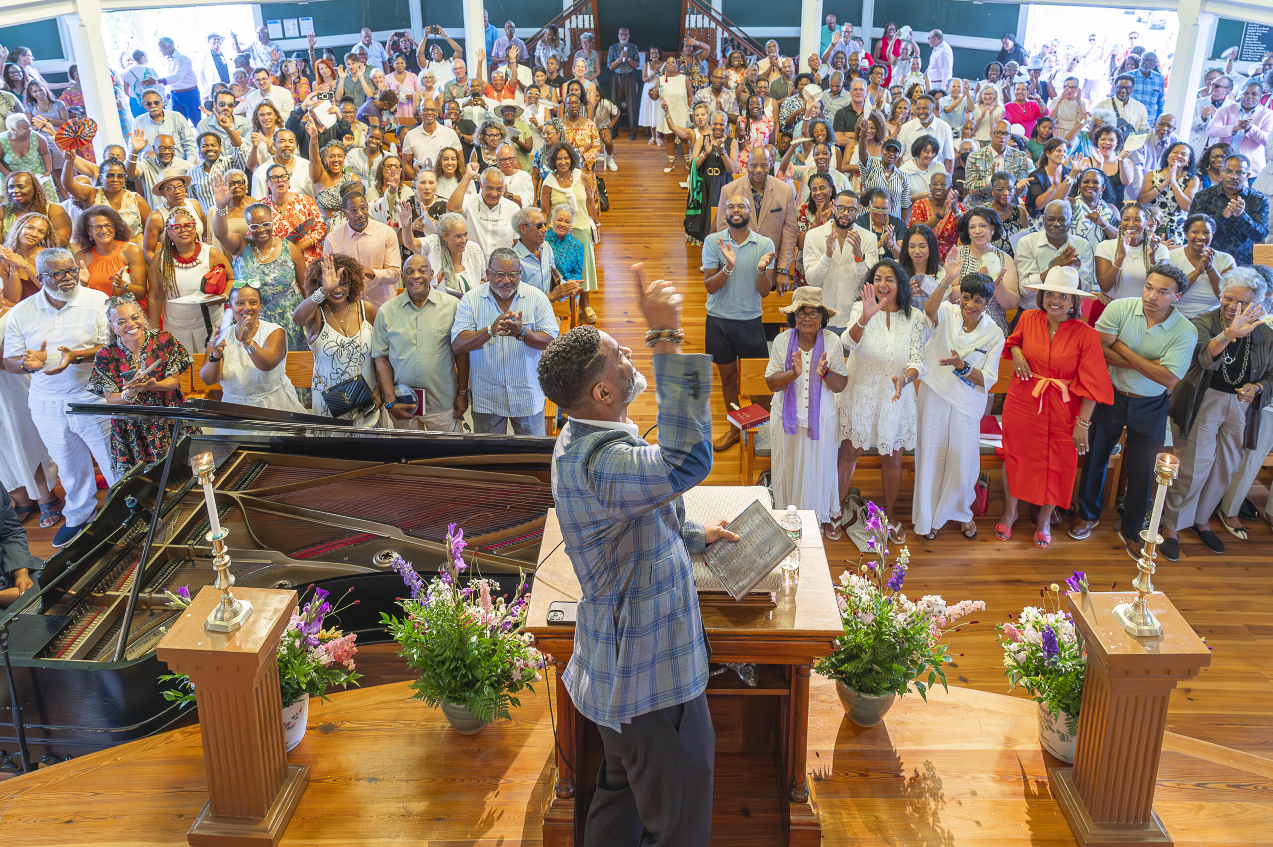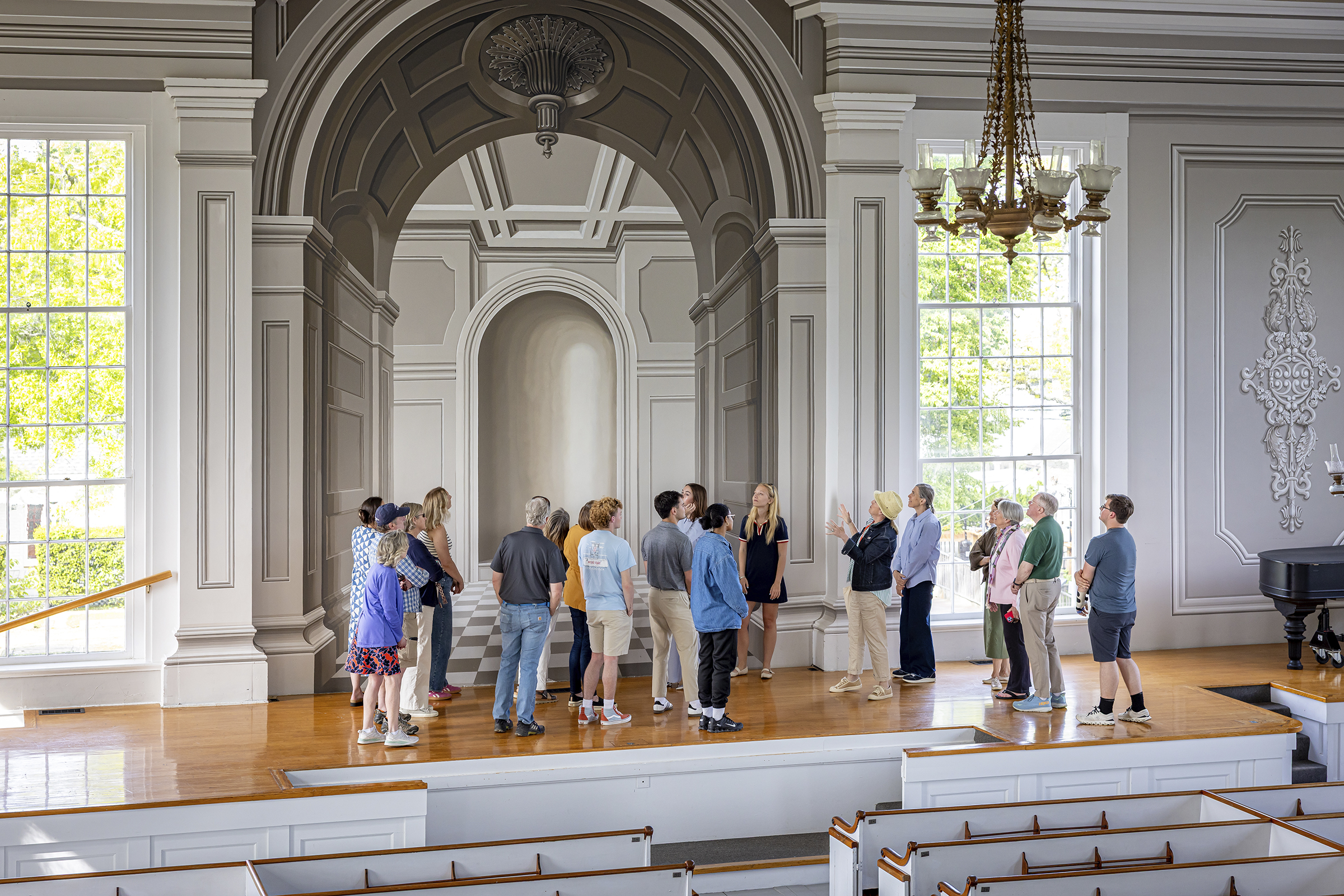 A special installation showcases the process of the Island’s celebrated muralist who transformed the Old Whaling Church and the Flying Horses.