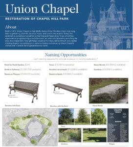 A naming opportunity is a meaningful way to honor a loved one, celebrate a milestone, or create a personal connection to one of our Island’s most treasured landmarks. Whether it’s a handcrafted bench at Union Chapel, a brick at The Carnegie, or another special place within our care, your gift helps preserve history while creating a lasting legacy.