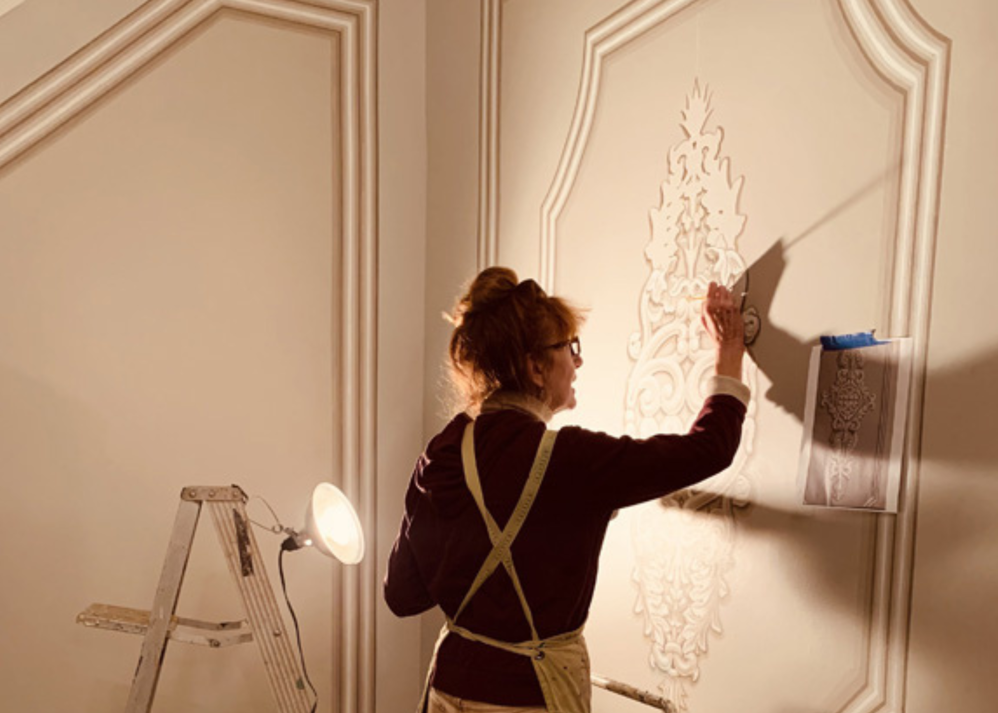 A special installation showcases the process of the Island’s celebrated muralist who transformed the Old Whaling Church and the Flying Horses.